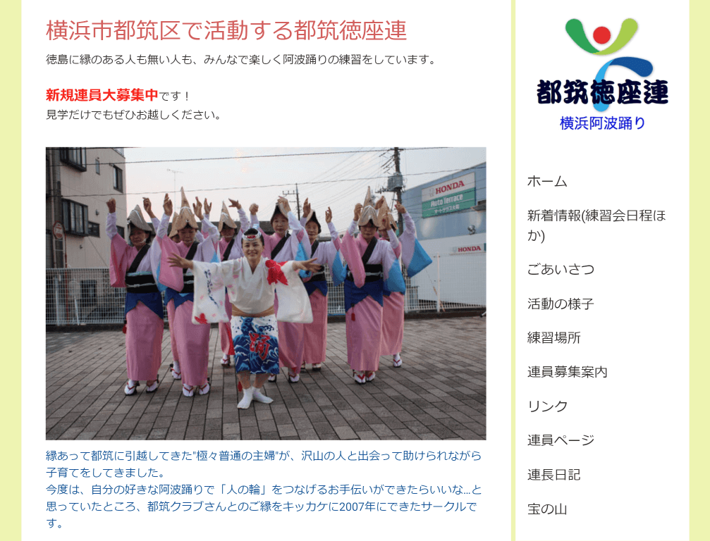 都筑で活動する阿波踊りサークル「都筑徳座連」をご紹介します。